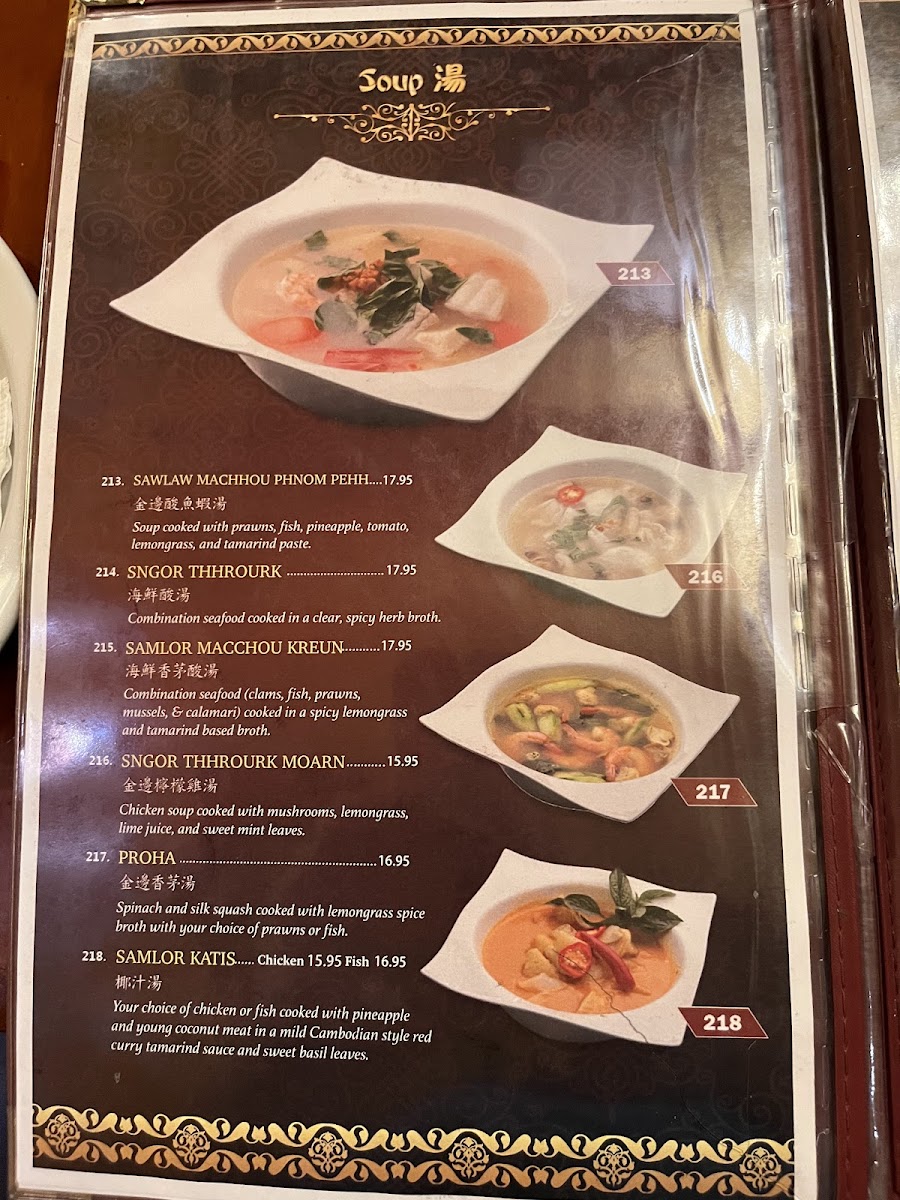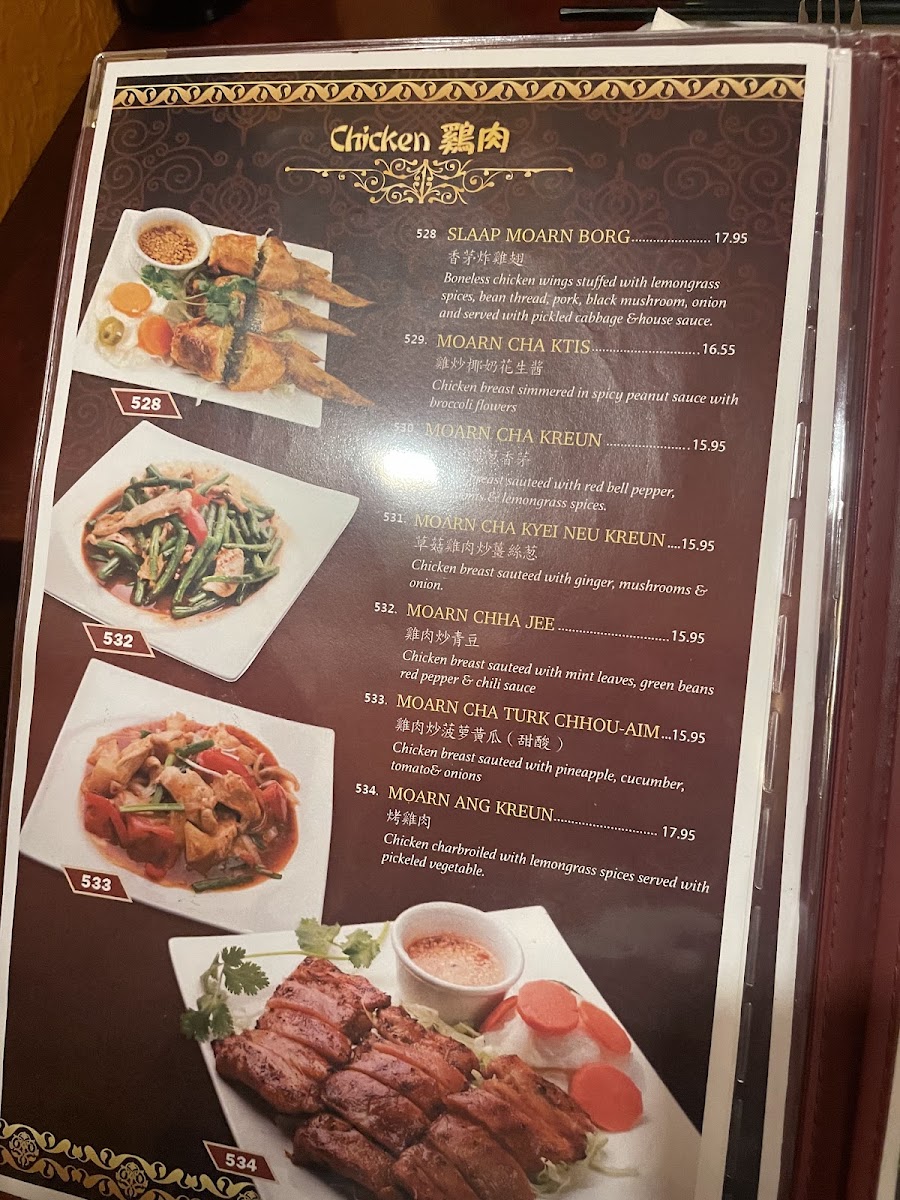 Welcome to Phnom Penh, a delightful Cambodian restaurant nestled in Oakland, California. This culinary gem invites you to explore its vibrant menu, filled with authentic flavors that celebrate Cambodian cuisine. From the tender Sachkor Cha Ktis—beef simmered in a rich curry peanut butter sauce—to the exotic Kary Khmer chicken curry, Phnon Penh showcases an array of enticing entrees.